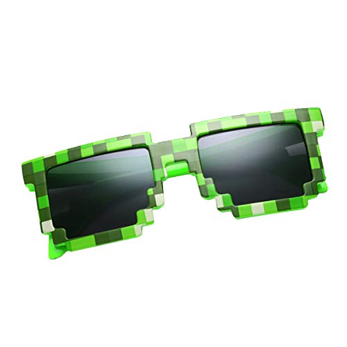 ZGHYBD 5 Pair Pixel Sunglasses,Boys Green Camouflage Pixelated Sunglasses UV Protect Gamer Sunglasses for Adult Kids Party