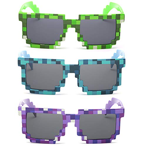 kilofly 3 gafas de sol de 8 bits Pixel UV Protect Gamer para adultos y niños