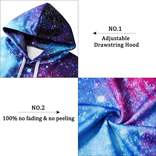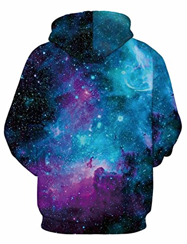 Loveternal Galaxia Azul Design 3D Sudadera con Capucha Estampado Digital para Mujer con Cordón Bolsillos M