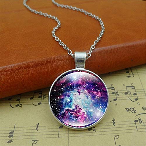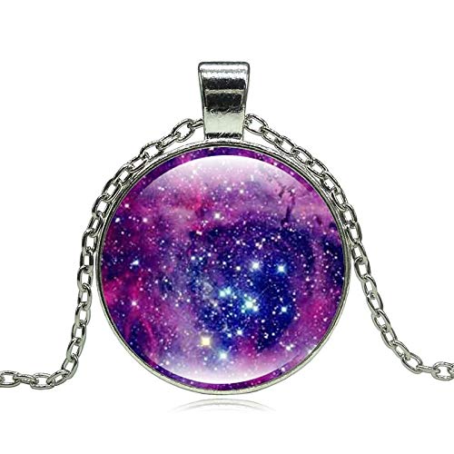 WYFLL Joyas Europeas Y Americanas Collar De Piedras Preciosas Galaxy Star Time Collar Colgante De Vidrio Plateado