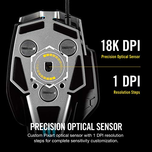 - El sensor óptico de juego más avanzado de CORSAIR: Nativo 18.000 DPI, ajustable en pasos de resolución de 1 DPI, le proporciona una personalización de sensibilidad total y un seguimiento ultra preciso.