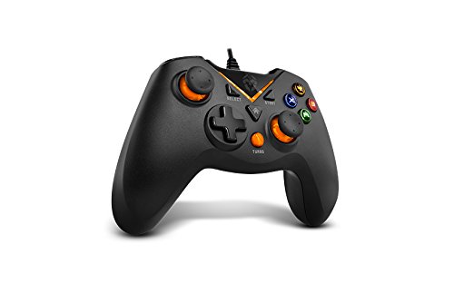 KROM KEY - Gamepad alámbrico, modos de juego X-input y Direct - input, joystick y gatillos analogicos, funcion turbo de disparo rapido, compatible con PC, Play station 3 y android 4,2, color negro