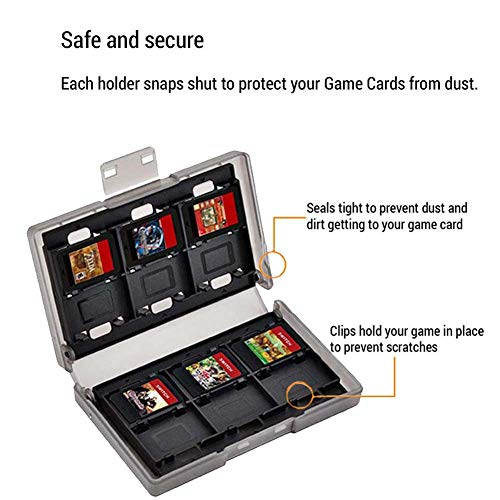 - ✪【 DISEÑO DE DOBLE CAPA】 En nuestro estuche protector, cada una de las dos bandejas dentro del estuche tiene 6 ranuras para tarjetas de doble cara, lo que le permite insertar hasta 24 tarjetas de juego de Nintendo Switch.