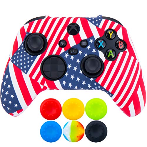 9CDeer 1 pieza de silicona de transferencia de impresión gruesa funda protectora + 6 agarres para Xbox Series X/S Controller Bandera Americana
