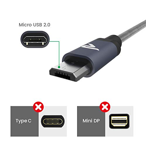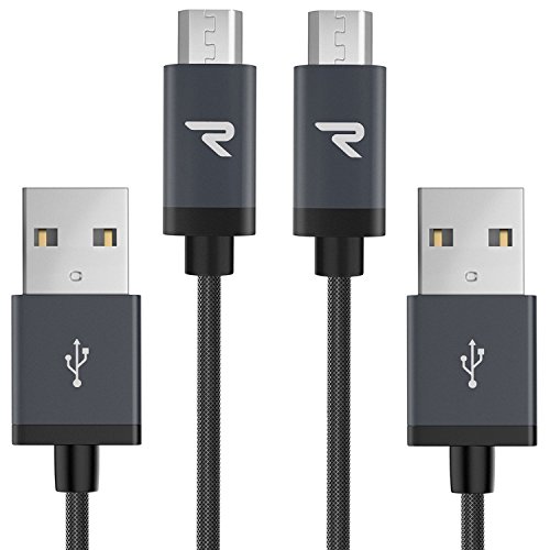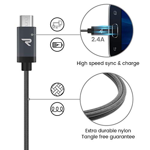Rampow Cable Micro USB 2,4A Carga Rápida [2 Pack] - Garantía De Por Vida - Nylón Trenzado Cable USB Compatible con Android, Samsung Galaxy, Kindle, Sony, Nexus, Motorola y más - 1M Gris Espacia