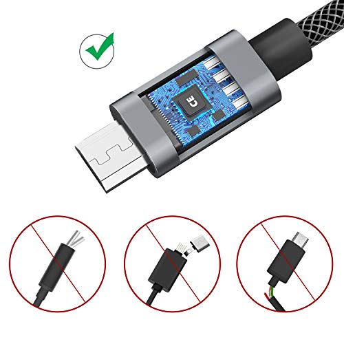 - Ultra Durability: Cubiertos con fibra de Nylon cubren el cable USB firmemente, lo que lo hace excelente contra dobles y golpes. El conector de aluminio es lo suficientemente robusto como para que se mantenga en buena condición por mucho tiempo y promete conexiones perfectas. El cable de nilón sin enredo ha sido puesto a prueba de 6000+ bend.