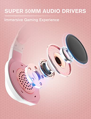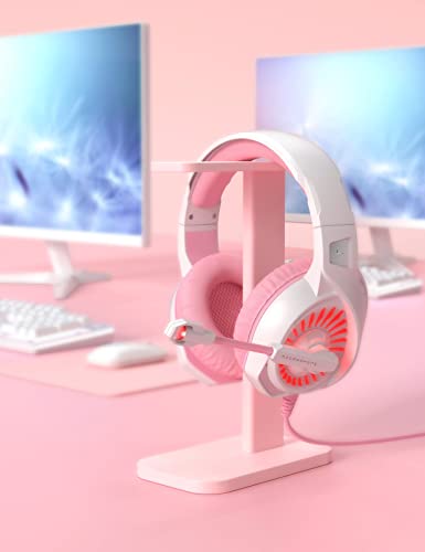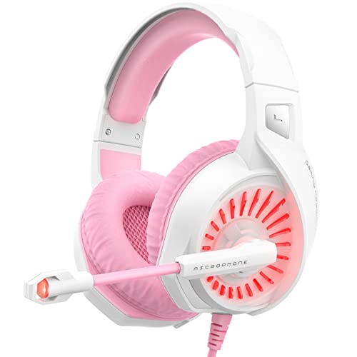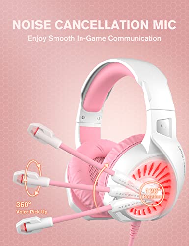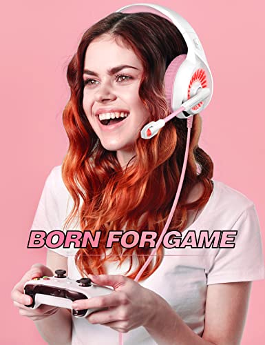 ZIUMIER Auriculares para Juegos con Micrófono, Cascos Gaming con Conector de 3,5 mm, Cancelación de Ruido, Graves Estéreo, para PS4, PS5, Xbox One, PC, Mac, Smartphone (Blanco y Rosa)
