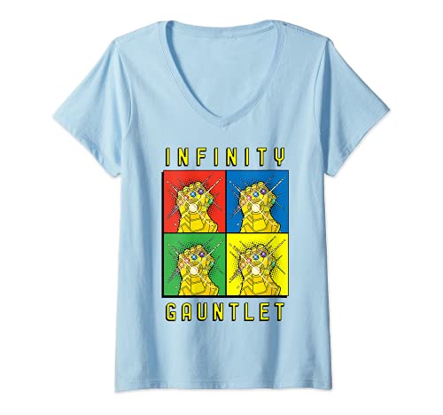 Mujer Marvel Avengers Infinity Gauntlet Pop Art Box Up C1 Camiseta Cuello V