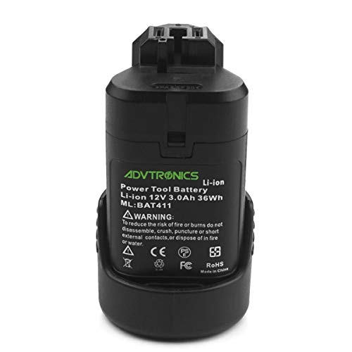 ADVTRONICS GBA 10,8 V GBA 12 V 12V 3,0Ah Li-Ion Batería para GBA12V30 BAT411 D-70745 BAT411A BAT412 BAT412A BAT413 BAT413A BAT414 2607336013 2607336014 2607336996 (Compatible con 10,8V y 12V)
