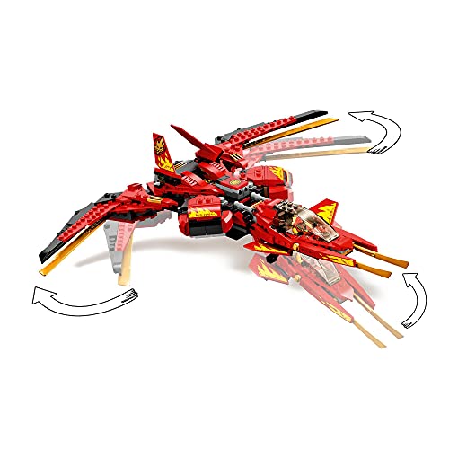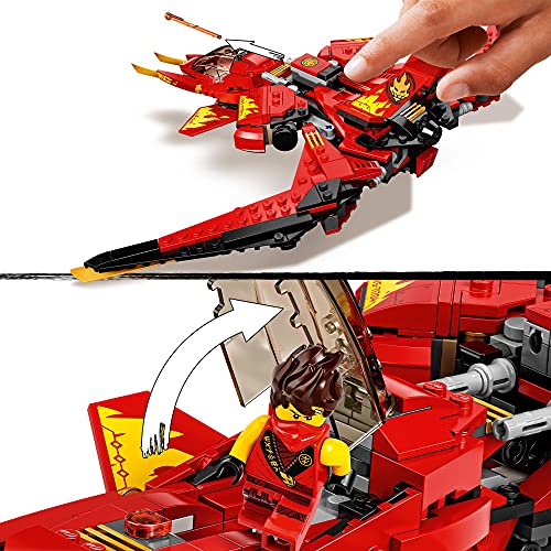 - Una moderna actualización del Caza de Kai que aparece en NINJAGO Maestros del Spinjitzu, con alas plegables, cabina ajustable y dos cañones automáticos. Mientras planean la siguiente batalla, los niños podrán exponerlo en su habitación.