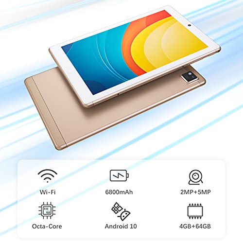 Tablet 10 Pulgadas Android 10.0 - YUMKEM Tableta 8 núcleos 4GB RAM 64GB ROM con | WiFi | Bluetooth | GPS | MicroSD 4-128 GB, Teclado Bluetooth/ratón inalambrico/Funda de Tablet - Oro