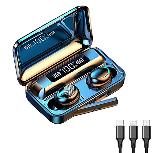 GPISEN Auriculares Bluetooth 5.0,Impermeable IPX7,Sonido Estéreo 9D,Pantalla Digital LED Inteligente,2000mAh Cámara de Carga,3 en 1 Multi Cable de Carga Compatible con Phone Samsung Huawei