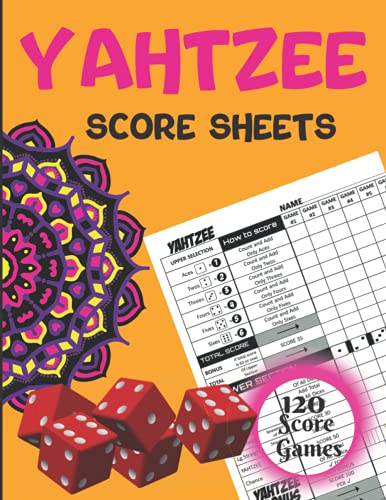 Yahtzee: 120 Score Sheets Large Print 8.5"x11" Games gift for Yahtzee lover Orange cover