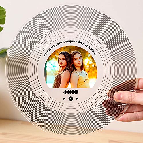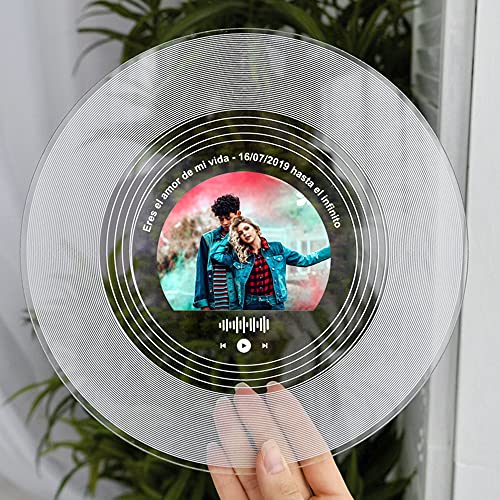 Disco Spotify de Vinilo decorativo con Foto Personalizable diseño Líneas Transparent Gift. Disco de Metacrilato, el regalo original para parejas aniversario bodas novios amigos y recuerdos
