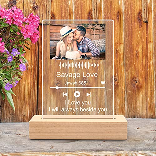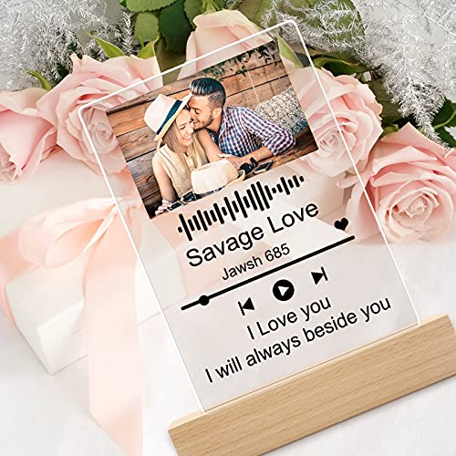 Custom Spotify Code Music Board with Holder Personalised Engraved Photo with Personalised Song & Singer Acrylic Music Plaque Personalised Collection Photo Album Glass Gift for Anniversary Her Him