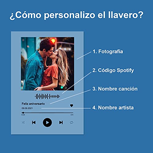 Llavero Spotify Personalizado. Foto con Cuadro transparente de Metacrilato. El Regalo Original para parejas aniversario bodas novios y recuerdos. Transparent Gift