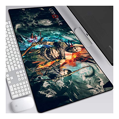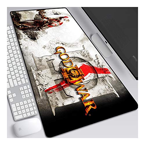 God of War - Alfombrilla de ratón de Anime de 800x300 mm, Alfombrillas para Mouse con Teclado, Alfombrilla de ratón para Juegos Profesional XXL Grande con Base de Goma de 3 mm de Grosor, para PC, G