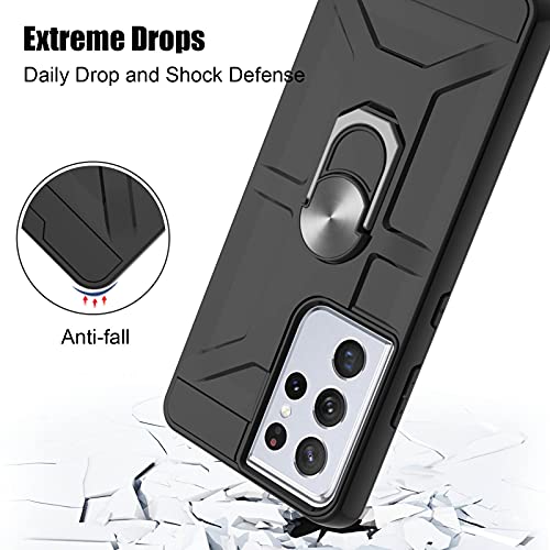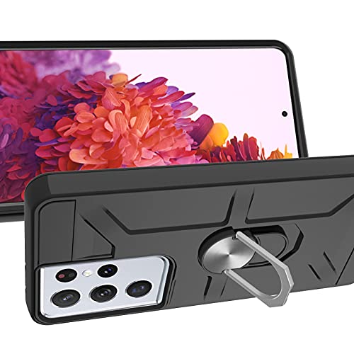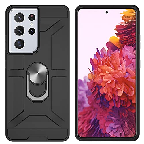 Zhang Caja del teléfono para Samsung Galaxy S21 Ultra 5G War-God TPU + PC Funda Protectora magnética a Prueba de Golpes con Soporte de Anillo Estuche Protector