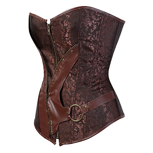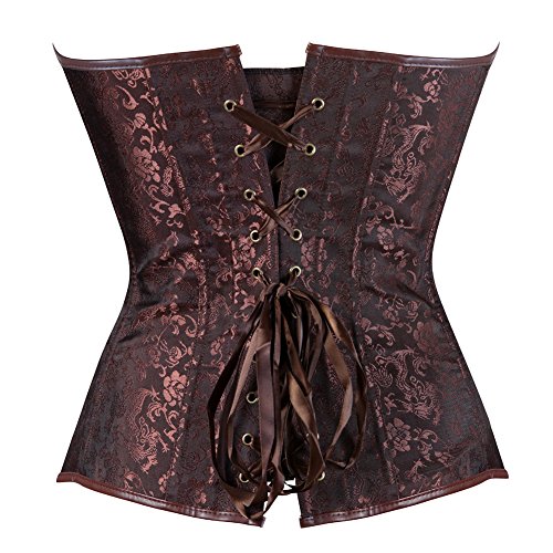 Grebrafan Mujeres Marrón Corset Steampunk Medieval gótico Cuero Corsé (EU(34-36) M, Marrón)