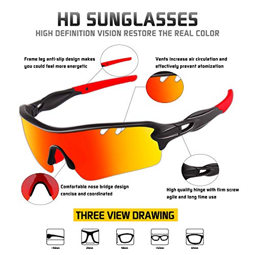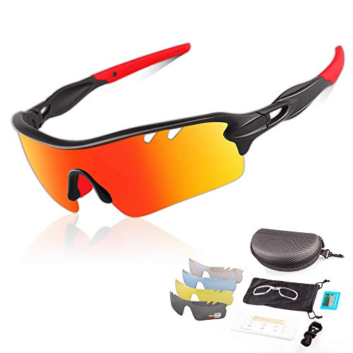 DUDUKING Gafas Sol Polarizadas Hombre Mujer Gafas de Sol Deportivas UV 400 Protección Gafas con 5 Rodajas De Lentes Intercambiables para Ciclismo Correr Golf Beisbol Surf Conducción Esquiando