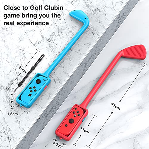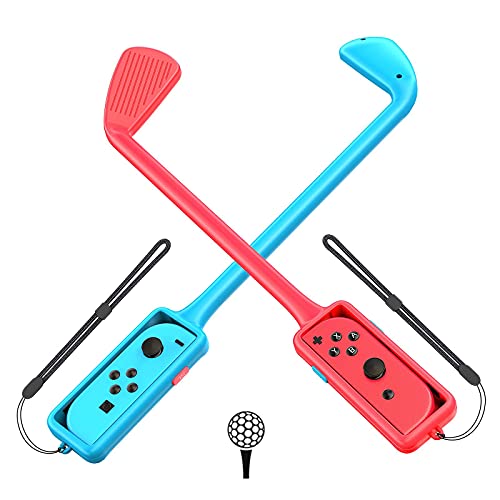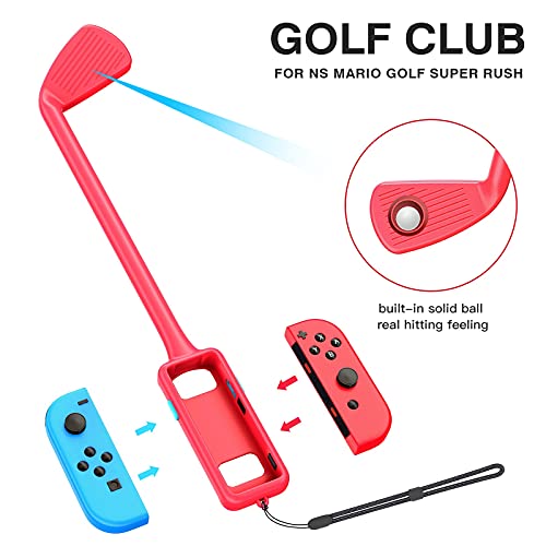 [2 Piezas] GTAplam Golf Club Compatible con Nintendo Switch, Joy con Controller Grip para Mario Golf, Golf Games Hand Grip Accesorios para Super Rush - Rojo y Azul