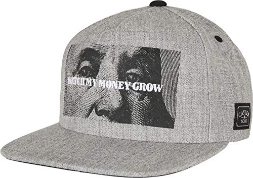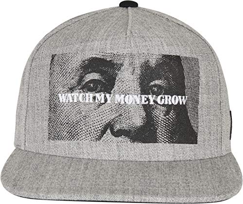 - Gorra snapback jaspeada con diseño de dólar y texto en inglés "watch my money grow"