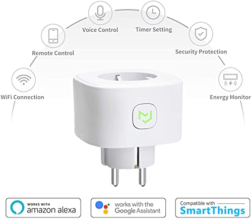 - Control por Voz: Enchufe inteligente wifi compartible con Alexa, google assistant. Puede controlar sus electrodomésticos a través de comandos de voz, como "Alexa, apague el aire acondicionado en dos horas. Estamos comprometidos a hacer que su hogar sea más inteligente y conveniente.(sólo 2.4Hz wifi)