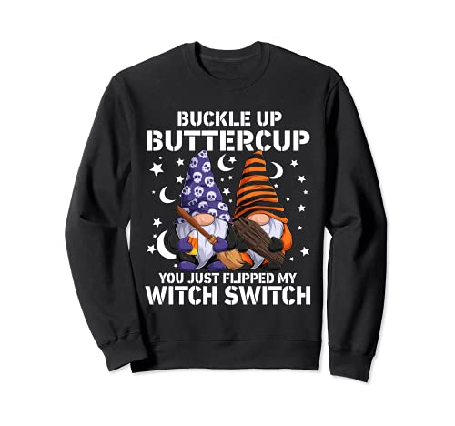 - ¡Feliz Halloween! Esta bruja gnomo con texto en inglés "Buckle up Buttercup You Just Flipped My Witch Switch" es un divertido estilo mago para mostrar tu amor por la temporada espeluznante o para una fiesta de disfraces. Sin trucos, solo tratar