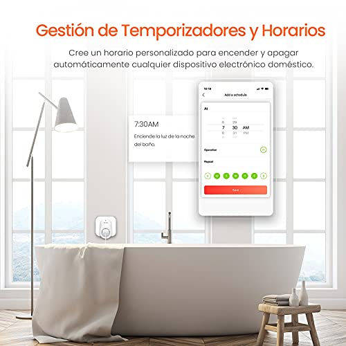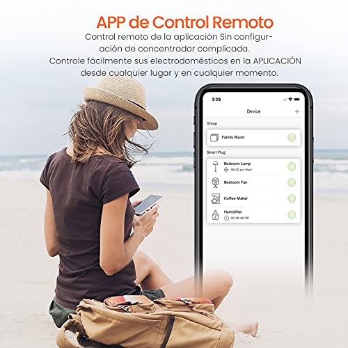 - Horario y Temporizador: El enchufe temporizador tiene funciones de temporización y cuenta regresiva. con la aplicación móvil, puede configurar libremente la hora de acuerdo con su horario. Por ejemplo, configure la luz para que se encienda a las seis en punto todas las noches y la máquina de café se apagará después de dos minutos.