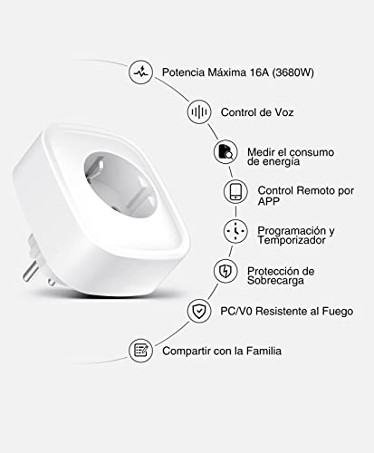 - Seguro y Confiable: Lo más importante para los equipos eléctricos es la seguridad. Este enchufe inteligente programable está hecho de material ignífugo V0 y está equiPado con protección contra rayos, sobrecorriente y sobrecarga del circuito, para que pueda usarlo con mayor facilidad Soporta carga máxima de 16A (3680W)