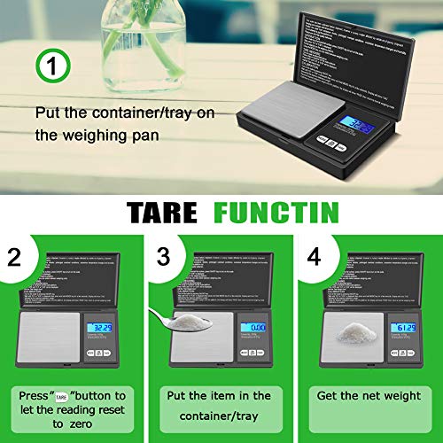 - 【7 Las diferentes mediciones】Diseñado con una pantalla LCD de alta calidad.La comida en miniatura escala incluye todas las medidas necesarias para facilitar las traducciones de unidad de peso.Convertir medición entre en g / gn / oz / ozt / ct / tl / dwt en segundos.Conveniente para usted para elegir la unidad correcta pulsando el botón.