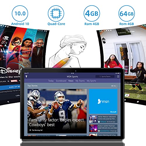 Tablet 10 Pulgadas, SUMTAB Android 10.0 Tableta, 8 núcleos, 4GB RAM + 64GB ROM, Pantalla G + G, Bluetooth, Soporte Netflix, Tiktok,Google Play