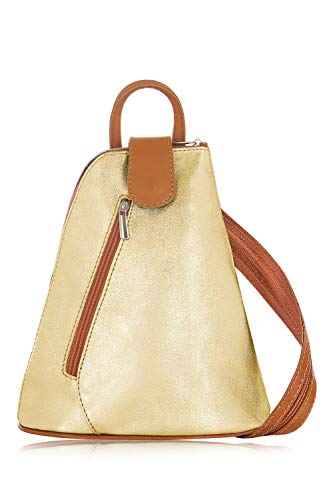 Montte Di Jinne - 100% Piel italiana suave| Mujer | Mochila triangular||Muy pequeña|, color Dorado, talla Small