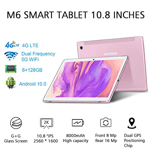 Tablet 10.8 Pulgadas FHD Ultrar-Rápido10-Core 2.3GHz, 4G LTE Android 10 Certificación Google GMS, Dual SIM, 6GB RAM 128GB ROM / 512GB,16MP + 8MP, 8000mAh, OTG, GPS (Rosado)