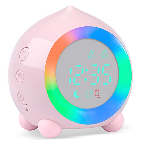PROKING Reloj Despertador Infantil Digital, Despertador Digital Simulador de Amanecer Despertador para Niñas Niños con Luces Colores y Lámpara de Luz Nocturna Despertador Silencioso (Rosa)