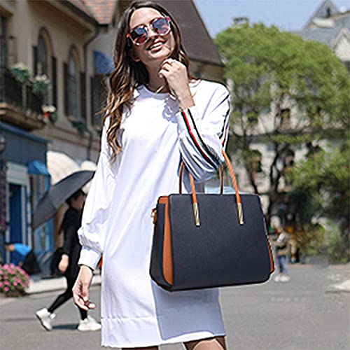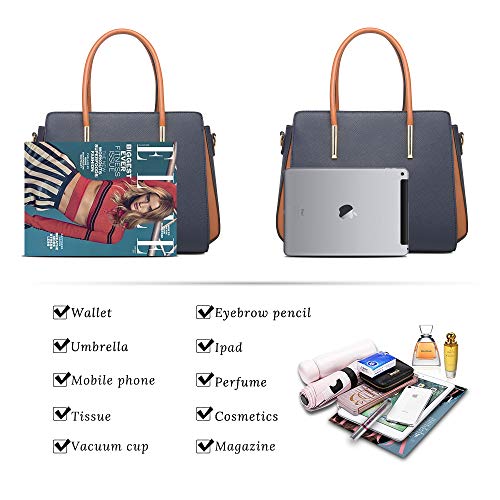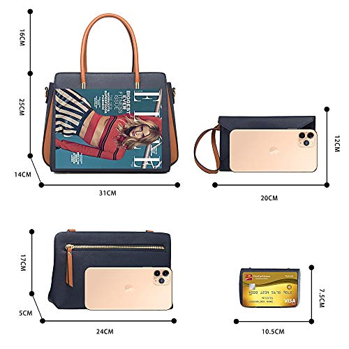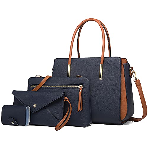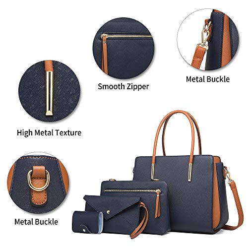 LUOWAN Bolsos de Mujer Bolso Bandolera Tote Bolso Señora Tote Grande De Hombro Bolsos PU Cuero Bolsos de mano 4pcs Set (Azul)