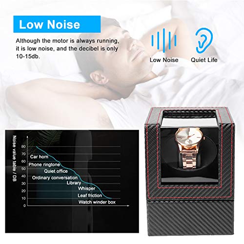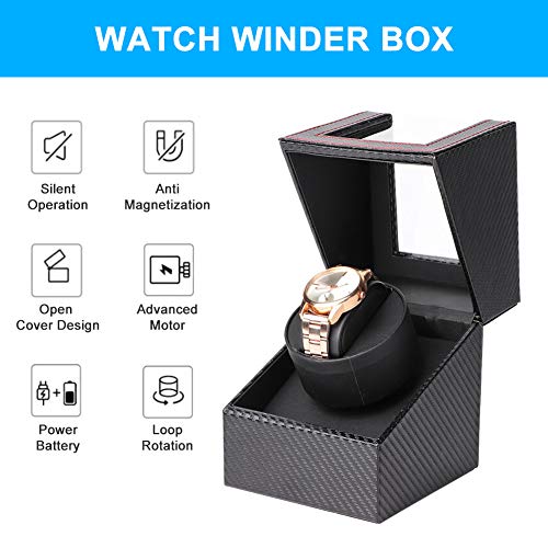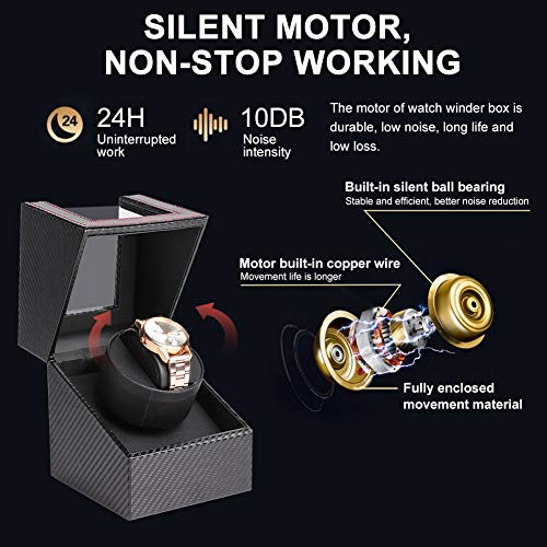 - ♡ Protección de reloj: El material de superficie de cuero de fibra de carbono y el hardware brillante hacen de esta enrolladora de relojes una decoración de lujo. La cubierta de acrílico transparente de plexiglás protege su reloj del polvo y la humedad, y también está equipado con un movimiento de cobre anti-magnético para garantizar que su reloj no esté magnetizado. La tela interior de franela de calidad es muy suave y puede proteger sus relojes contra golpes y desguaces.