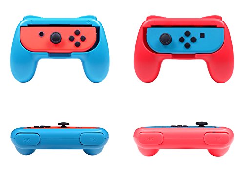 HEYSTOP 2 Piezas Grips Compatible con Nintendo Switch, Mando Grip Kit, Funda Protector Handle Kits para Mandos Grip Set de Nintendo Switch Controller, Rojo & Azul