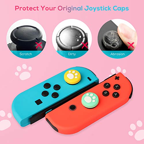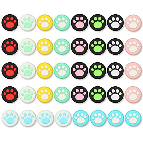 EEEKit 40 Piezas Tapas de Agarre para el Pulgar Compatible con Nintendo Switch y Switch Lite, Cubierta Protectora de Botones de Silicona Diseño de Pata de Gato Joy-con Controlador
