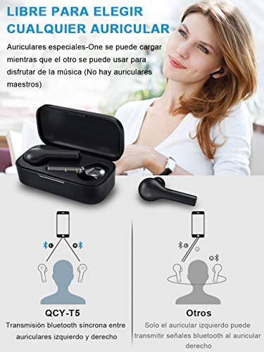 Auriculares Bluetooth con Modo de Juego, HOMSCAM Impermeable Auriculares Inalámbricos Bluetooth 5.0 QCY HiFi Mini Twins Estéreo In-Ear Bluetooth con Caja de Carga