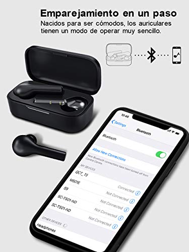 - [Sonido superior y cancelación de sonido] Adopta el chip profesional de Realtek y un diafragma biológico para mejorar el sonido, nuestros auriculares inalámbricos te dan una experiencia excelente de sonido con bajos potentes y y llamadas claras. El micrófono incorporado y el diseño de cancelación de ruido, tanto el auricular izquierdo como el derecho soportan responder y colgar llamadas, brindándole una grata experiencia de llamada.