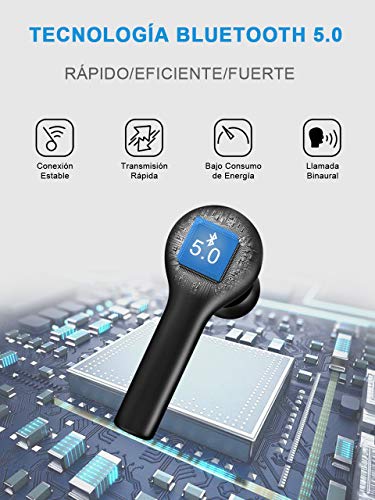 - [Nueva tecnología Bluetooth 5.0]-Los auriculares inalámbricos están equipados con chips Bluetooth 5.0 de nueva generación, la velocidad de transferencia de datos es hasta 3 veces más rápida que la generación anterior sin enredarse, la conexión es más rápida y estable. Más suave para escuchar canciones y jugar juegos