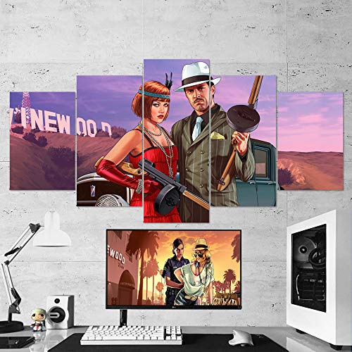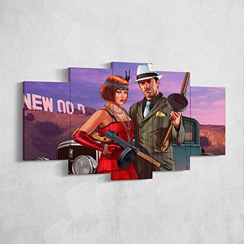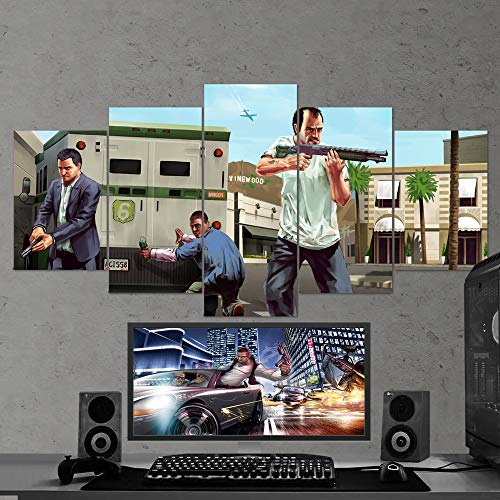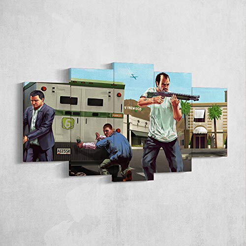 BA-CO GTA Wall Art - Lienzo decorativo de 5 piezas para pared, lienzo para juegos, Grand Theft Auto adhesivo de pared, enmarcado, listo para colgar, GTA San Andreas (mediano 99 x 58,4 cm)