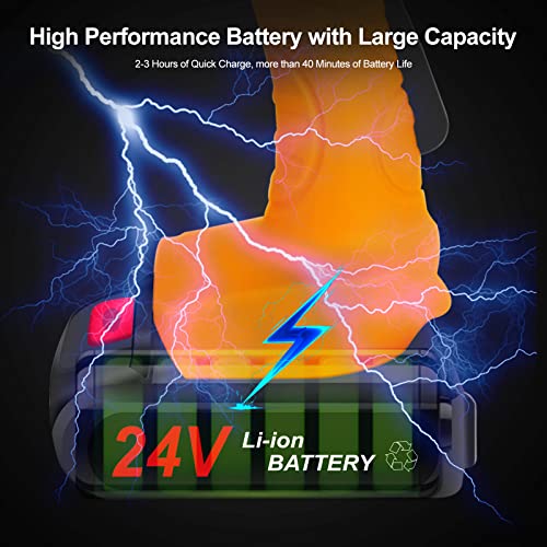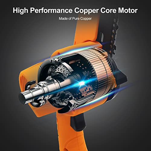 - 【Gran flexibilidad y 2 baterías grandes recargables de alto rendimiento】 Esta motosierra ligera y flexible para una mano pesa solo 1,12 kg con batería. En comparación con las motosierras convencionales y las motosierras de cable eléctrico, las ventajas son obvias. La batería tiene una vida útil prolongada con protección contra sobrecorriente / sobretemperatura / sobretensión y 2-3 horas de carga rápida para un tiempo de funcionamiento de más de 40 minutos.