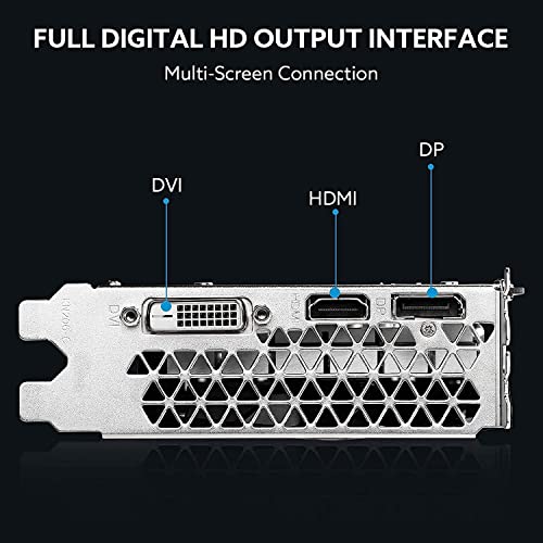 - Amplia compatibilidad: con un mayor rendimiento y una forma elegante tarjeta gráfica para juegos, que es compatible con interfaz de HDMI, DP, DVI, PCI-E, también ranura para tarjeta gráfica PCI Express 3.0 para tus diversas necesidades.