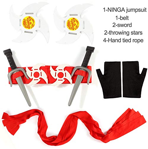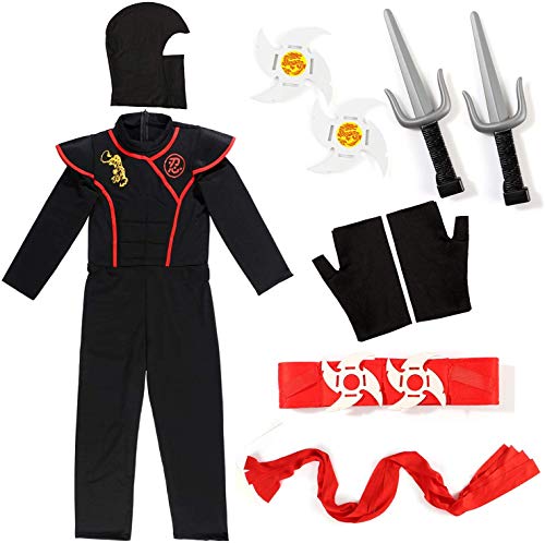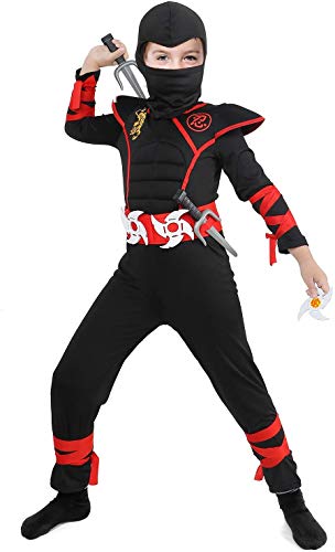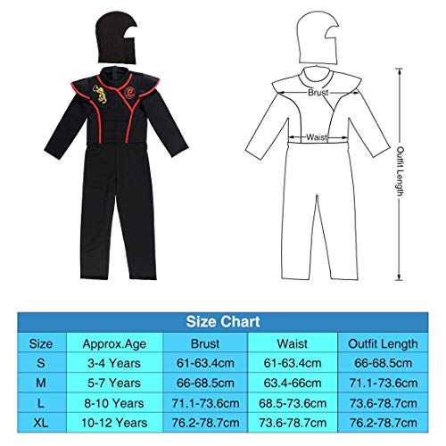 Tacobear Disfraz de Power Ninja para Niño Disfraz Infantil de Halloween Negro y Rojo 3-12 años (L (8-10 años))