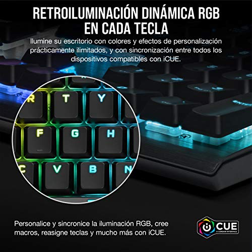 - Retroiluminación RGB dinámica en dos zonas: Elija entre los efectos de iluminación predefinidos o cree los suyos propios con una personalización casi ilimitada en el software Icue