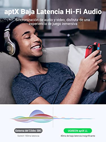 UGREEN Adaptador Bluetooth para Switch/Switch Lite, Transmisor Bluetooth 5.0 con aptX LL Baja Latencia, Mini Bluetooth Jack 3.5mm Compatible con Airpods Auricular Altavoz Bluetooth,Plug&Play