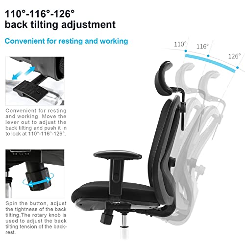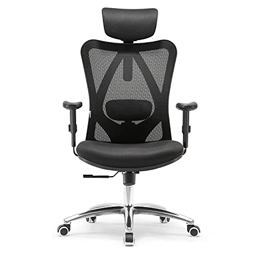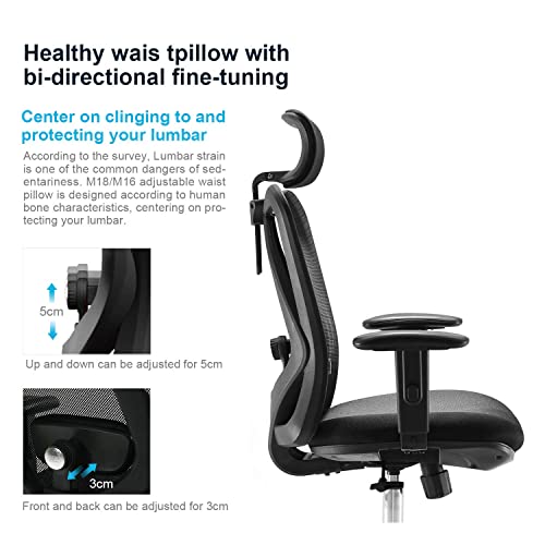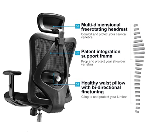 SIHOO Silla Ergonómica de Oficina, Silla de Escritorio con Soporte Lumbar Ajustables, Reposacabezas y Apoyabrazos, Malla Giratoria, Mecanismo de Inclinación, Carga máxima de 150 kg/ 330LB