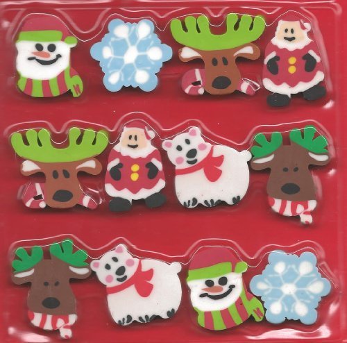 - Christmas Holiday Eraser Set 12 Pc. Party Favors w/ Santa, Snowman & More! by Christmas House
